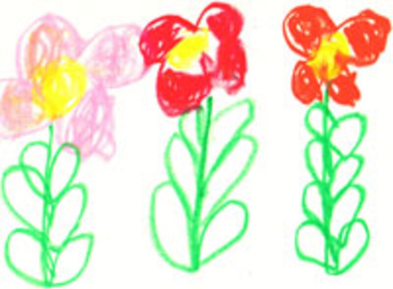 A5くらいの大きさの紙にクレヨンなどで描かせるピンクや黄色などの薄い色は色がきれいに出にくいので、できれば赤・緑・青・茶などの濃い色を使わせるのがおすすめ。