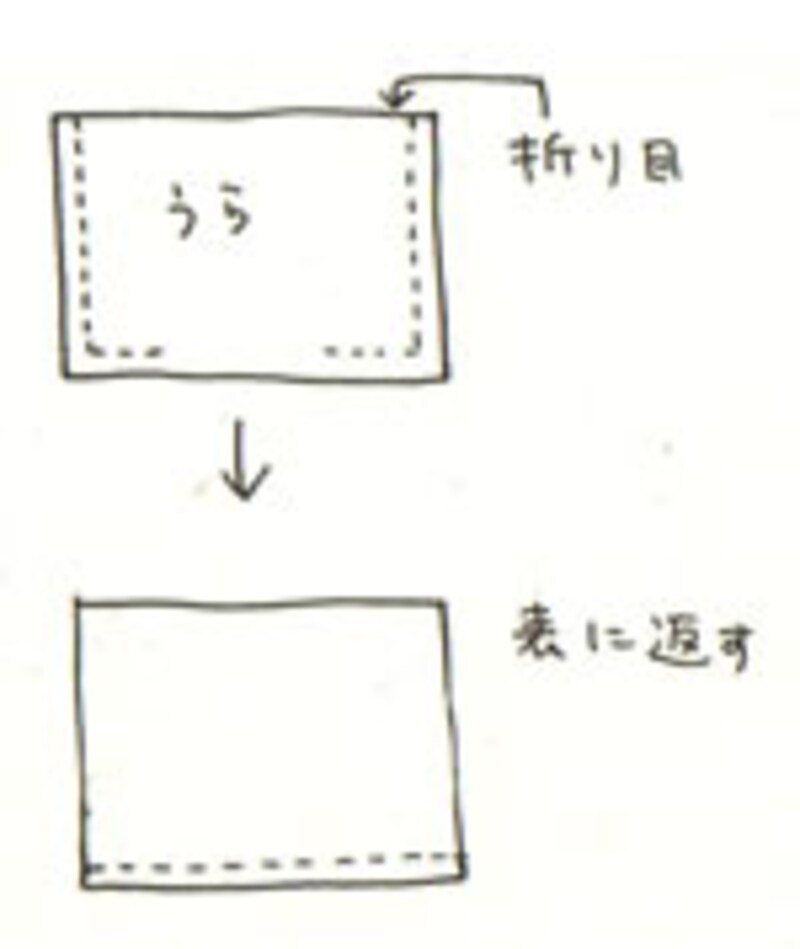 裏返して周りを縫い、おもてに返す返し口を少し開けて縫っておき、おもてに返してからその辺をもう一度縫う。