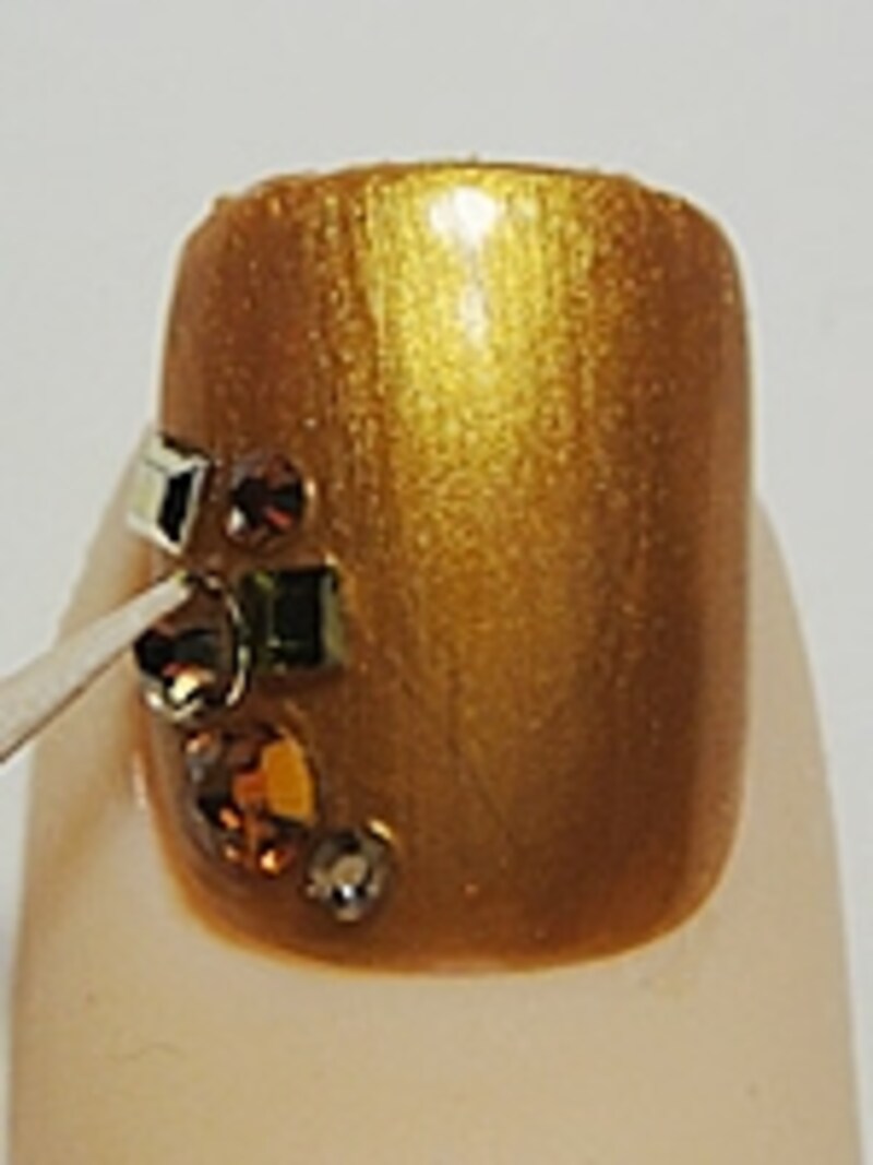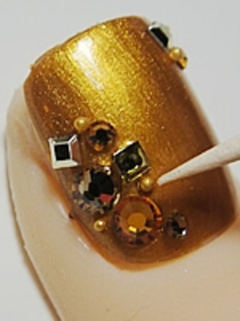 4. 対角線上の爪の先端へ少しストーンを置きます。