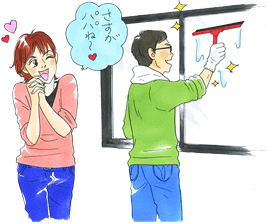 - 台所・居間・玄関・寝室などの窓外側は、自分自身では手が届きません。そこで、この掃除は主人と私が協力し合って実行。(50代 専業主婦)