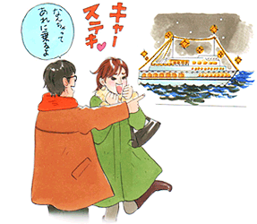 - クルーズ・ディナー。「船に乗るから」と前日に言われたので、オシャレをしていったら、集合場所で「あれ、長靴を履いてこなかったの?夜釣りだよ。」と衝撃の一言。「クルーズだと思ってた~、ハイヒールだけどどうしよう」と焦ったが、案内されたのは、ちゃんとクルーズ船。素敵なクルーズ・ディナーだった。パニクった分、鮮明に覚えている。(20代 自営業・自由業)