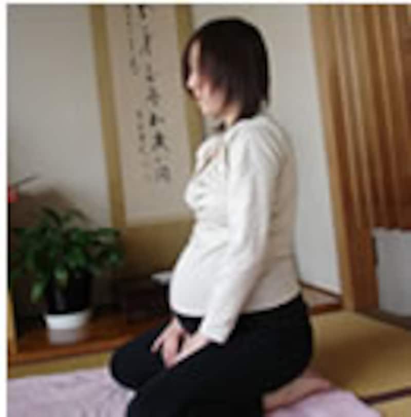 この「猫の体位」「猫の伸びの体位」は、誰にでもできて背骨をしなやかにしてくれます。妊婦さんにとっては、お腹が逆さになる部分が逆子直しのポーズとして有名ですね。陣痛のきつい時を乗り切るにもおすすめのポーズです。