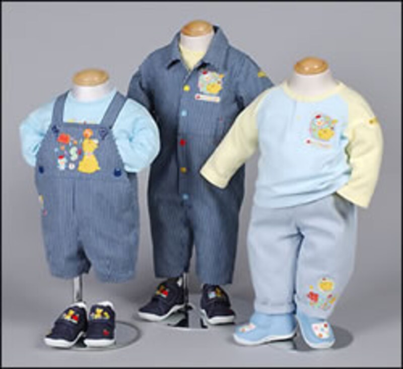 右 トレーナー 43-5602-231 Color:白・ブルー Size:70・80cm Price:¥5,600 パンツ 43-3203-232 Color:ブルー・Iブルー Size:70・80cm Price:¥5,200 ベビーシューズ 43-9303-239 Color:黄・ブルー Size:11.5・12・12.5・13cm Price:¥5,200 |