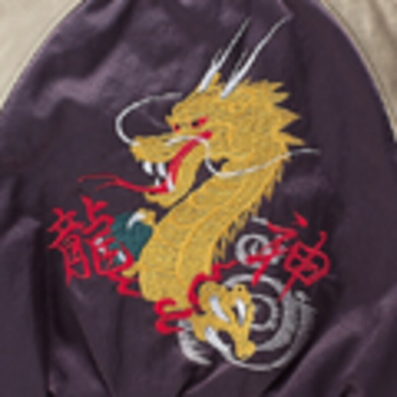 スカジャンの刺繍には、龍や虎、鷹など日本風のデザインが基本 |