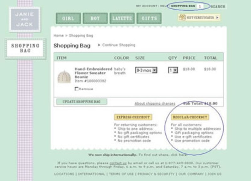 ショッピングバッグの中身を見るにはサイト上部にある【SHOPPING BAG】ボタンをクリックして下さい。 |