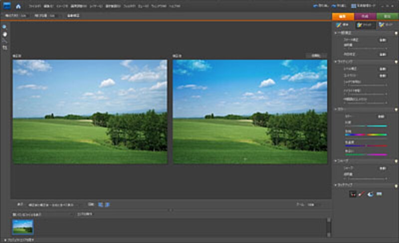 補正前と補正後の写真を並べることができるので、「補正しすぎて不自然になってしまった…」というミスも防ぐことができ、 写真補正の初心者でも自然な仕上がりが得られます。