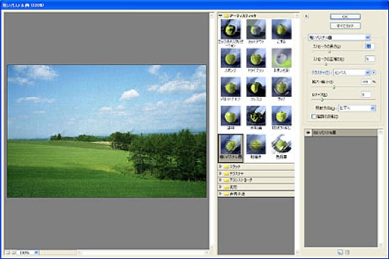 | 風景写真をスケッチ風にするのもボタン1つでOK スマートブラシと併せて使いたい豊富な効果 |