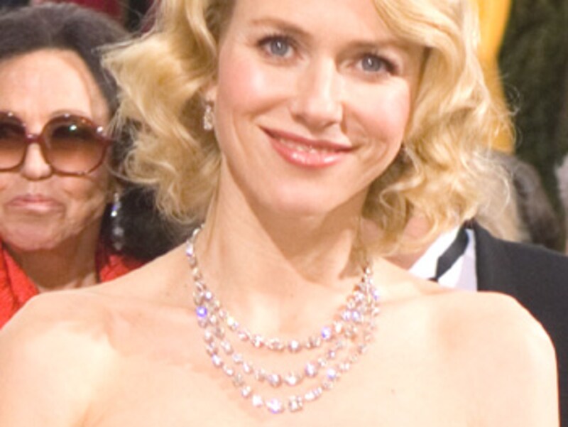 恋人の" TARGET="_blank">リーヴ・シュライバーが、出演中のテレビ番組でうっかりコメントしてしまったおかげで、妊娠がバレてしまったナオミ・ワッツ。お腹周りがめだたないふんわり系イエロードレスをセレクトし、親友のニコール・キッドマンと仲良くオスカー会場へ。肩やデコルテをすっきりと出して、胸の下でリボンベルトのウエストマーク。締め付けがなく、肩のこらないエスカーダのドレスは、上半身に目線を引きつけるデザインで、スタイルを良く見せています。