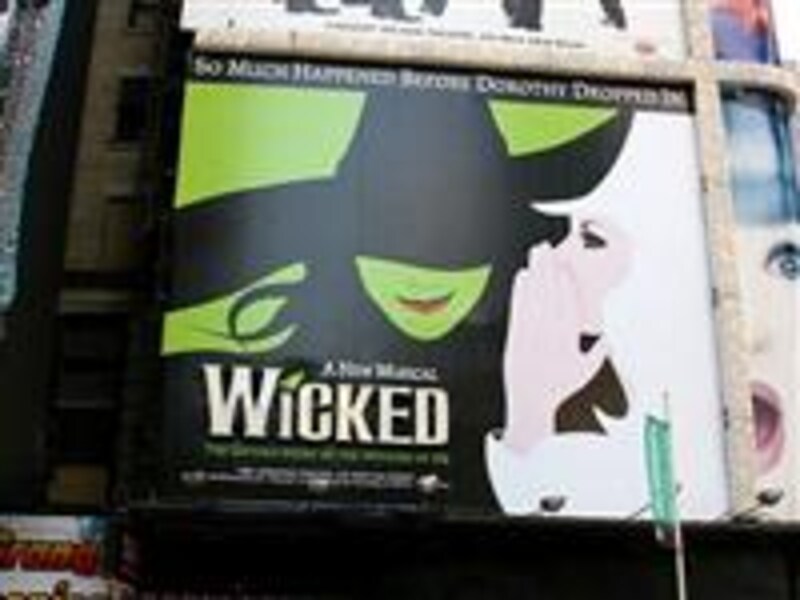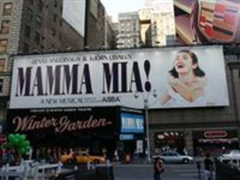 | ブロードウェイ沿いには、ミュージカルの広告が全面に貼り出されています |
