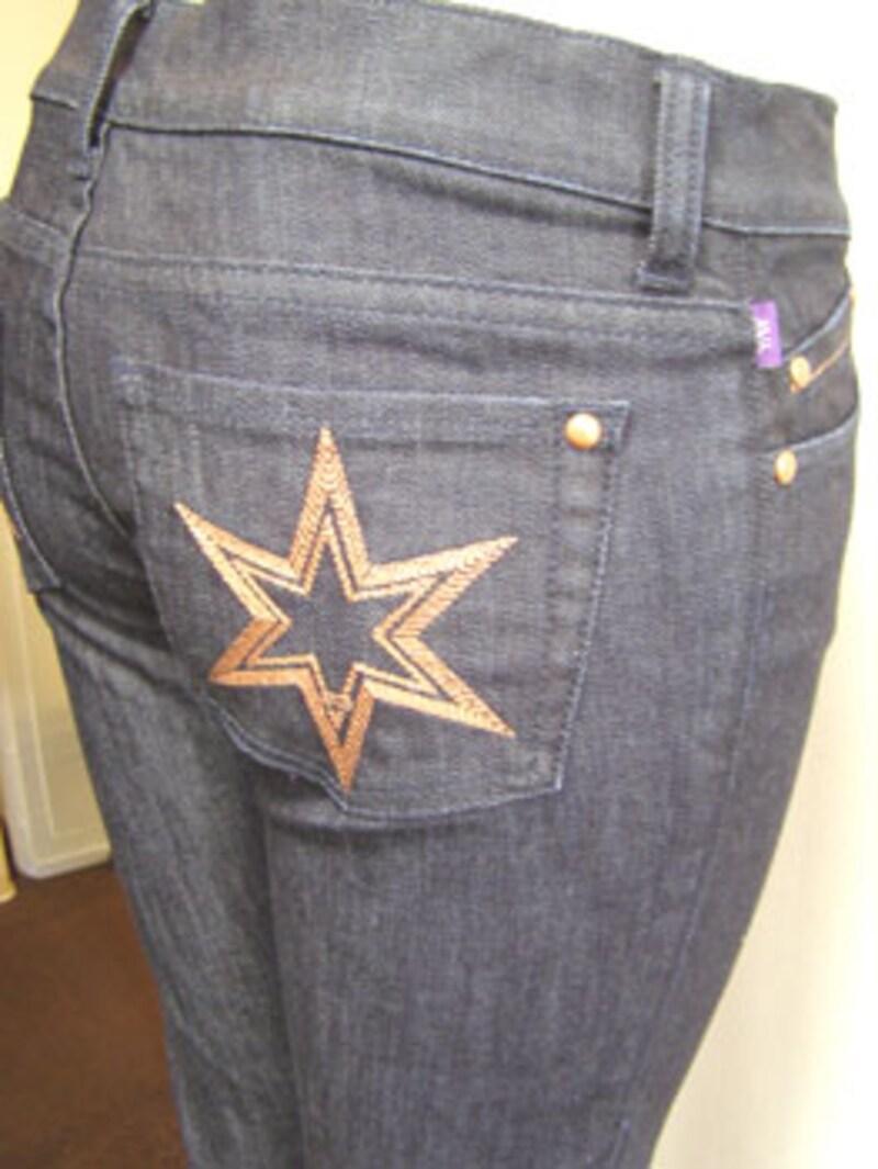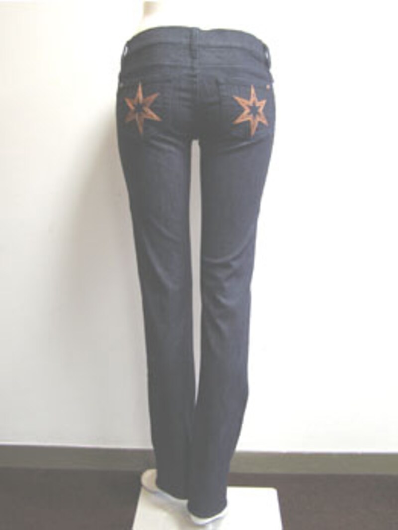 ブーツカットデニム横側からの表情です。ヒップラインに施されたスターデザインが、なんともヴィクトリアらしいですね。やはりココに視線が集中するので、黙っていても、「単なるデニムじゃないのよ、これは、ヴィクトリア・ベッカムなのよ!」という声が聴こえてきそうです。はいているだけでセレブっぽい気分に浸れます。