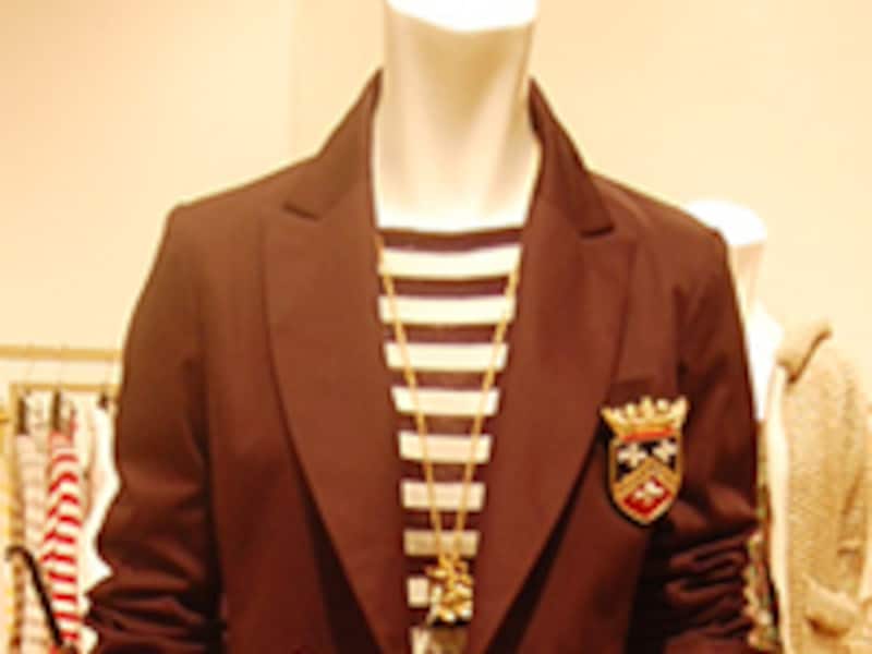 | Wテーラードジャケット(ロング) \25,000(税込) ティアードスカート \11,000(税込) ボーダーニット \8,900(税込) |