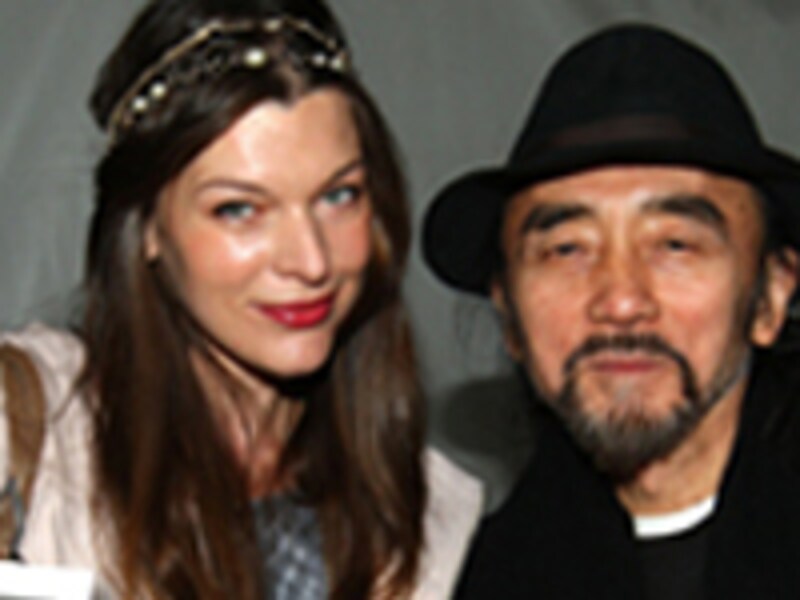 | NYで開催された「adidas(アディダス)」と「Yohji Yamamoto(ヨウジヤマモト)」によるコラボレーションブランド「Y-3(ワイスリー)」の2009-10秋冬コレクション会場にて。(右から)「Y-3」クリエイティブ・ディレクター山本耀司氏、ブランド「Jovovich-Hawk(ジョヴォヴィッチ ホーク)」のデザイナーとしても活動している、女優ミラ・ジョヴォヴィッチ。 |