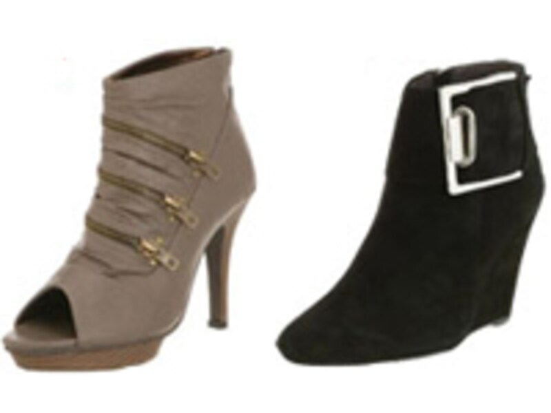 | 1.アイランドストームにジッパー使いが効いた、こだわりの感じられるオープントゥブーティー。このプライスは嬉しくて、思わず衝動買い?! ジップデザインオープントゥブーティ \4,179(税込)/ROSY ROSY 2.インパクトのあるバックルがポイントのウエッジショートブーツ。ヒールの高さを感じさせず、安定感◎。足の馴染みの良い、柔らかい山羊革を使用。 デカバックルウエッジショートブーツ \12,600(税込)※65%OFF価格/LOGAN 3.足元にボリュームとインパクトが出せるブーティー。柄付きのヒールがモードな雰囲気漂います。 アウトストームフリンジブーティー \31,500(税込)※50%OFF価格/MAGRIT 4.雰囲気のある革風素材とスポーツテイストのミックスが、今の気分。オープントゥブーティ \4,179(税込)/ROSY ROSY(以上すべてジャバリ |