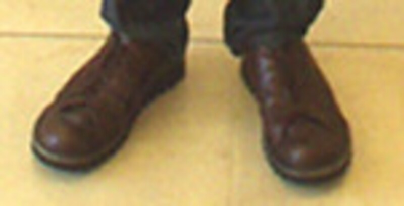 ジーンズとオレンジは相性が良いのをご存知なのか、インディゴブルーの帽子とボトムを合わせ、ダークブラウンの革靴とともに全体を引き締めています。これらのスラッとしたやや硬めのフォルムが、ともすればワイルドで過激に見えたり野暮ったくなってしまうオレンジを、スマートで理知的なイメージに変換しています。このへんがクリエイターのワザ!って感じなんですけど。