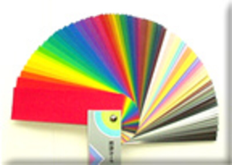 「色彩検定」の場合、公式テキストと一緒に約200色からなる指定カラーカードを購入します。広げるとこんな感じです。すごいでしょう!1級2次は実技試験で、試験会場でこのカラーカードが配られるんですよ。日頃使い慣れたハサミやのりを持ち込み、ペタペタ解答用紙に貼り付けます。学校の図画工作、美術の期末試験だってこんなことしませんよね。検定試験のようで、検定試験でないような。でもこれが色の検定なのです。