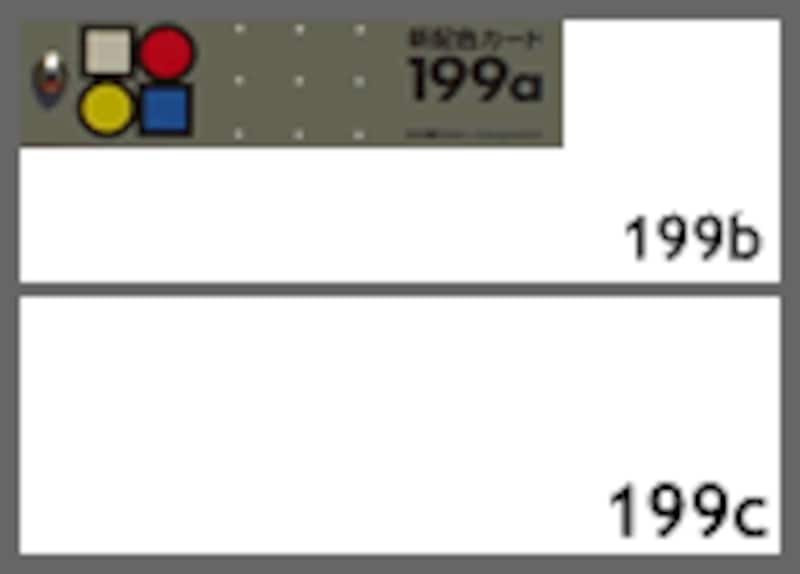日本色研オリジナル配色体系「PCCS」201系(201色)からいくつかのトーンを選び、そのほかよく使われる色を足して199色にしたものです。ほかに「配色カード158(158色)」など、色数や光沢が異なるものがあります。