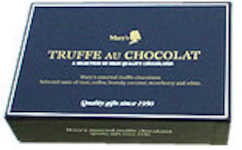 下のトリュフチョコのパッケージにも一部ゴールドが入っていて、全体はミッドナイトブルーとでもいいましょうか、ほとんど黒に近い暗い青です。