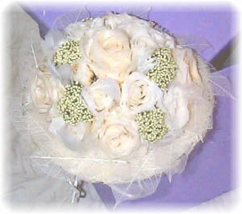 白いウェデイングドレスに白いバラのブーケは、花嫁の清楚なイメージそのもの。男性の正装にこの白いバラは、赤いバラの次に似合いそうです。