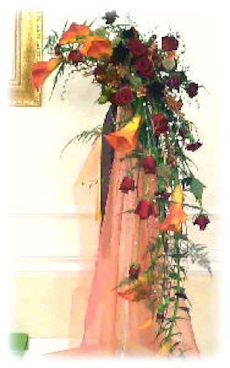 官能的な深紅の花束。白とのコントラストが強く、よりシャープに大人っぽいイメージになります。