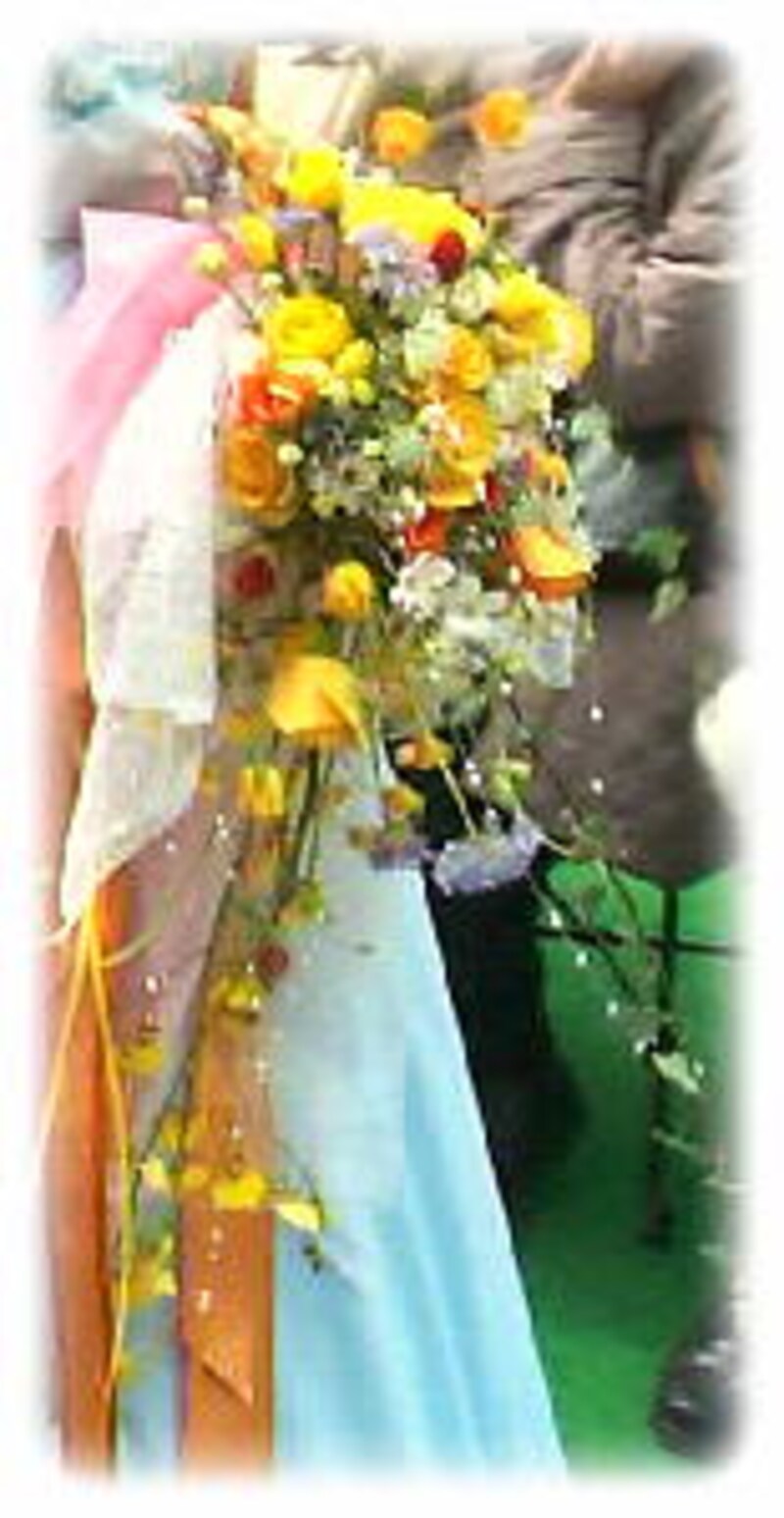 イエローの花ばかり集めたブーケ。イエローにはピンクの甘さはありません。まったりとした甘い幸福感というよりも、ゴールドに輝くまばゆい光、未来の幸福感を表します。