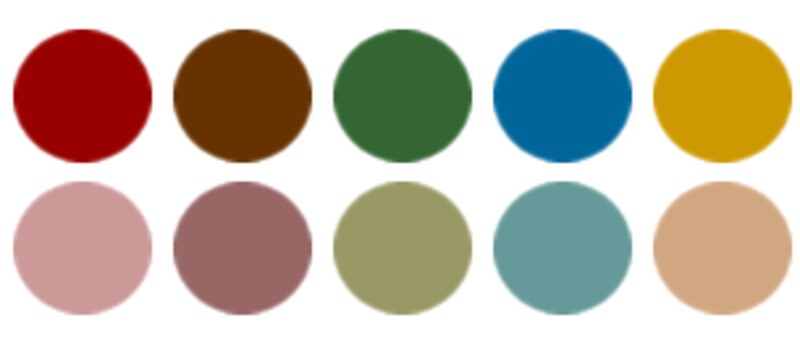 上段は明度を下げた暗い色、下段は明度を上げた明るい色です。年月が経って色あせた感じ。
