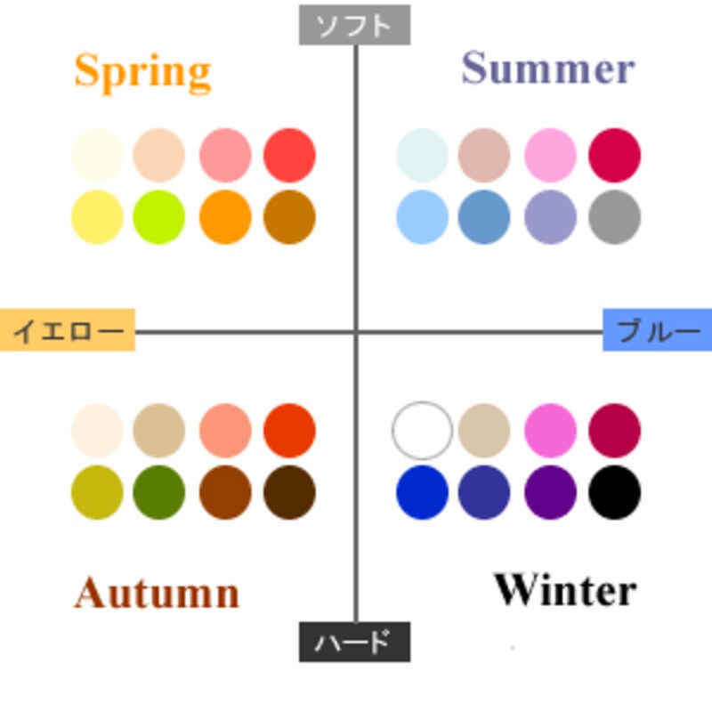 まず、パーソナルカラーサイトの自己診断テストで、自分が「春」「夏」「秋」「冬」のどのシーズンタイプに当てはまるか、調べてみましょう。