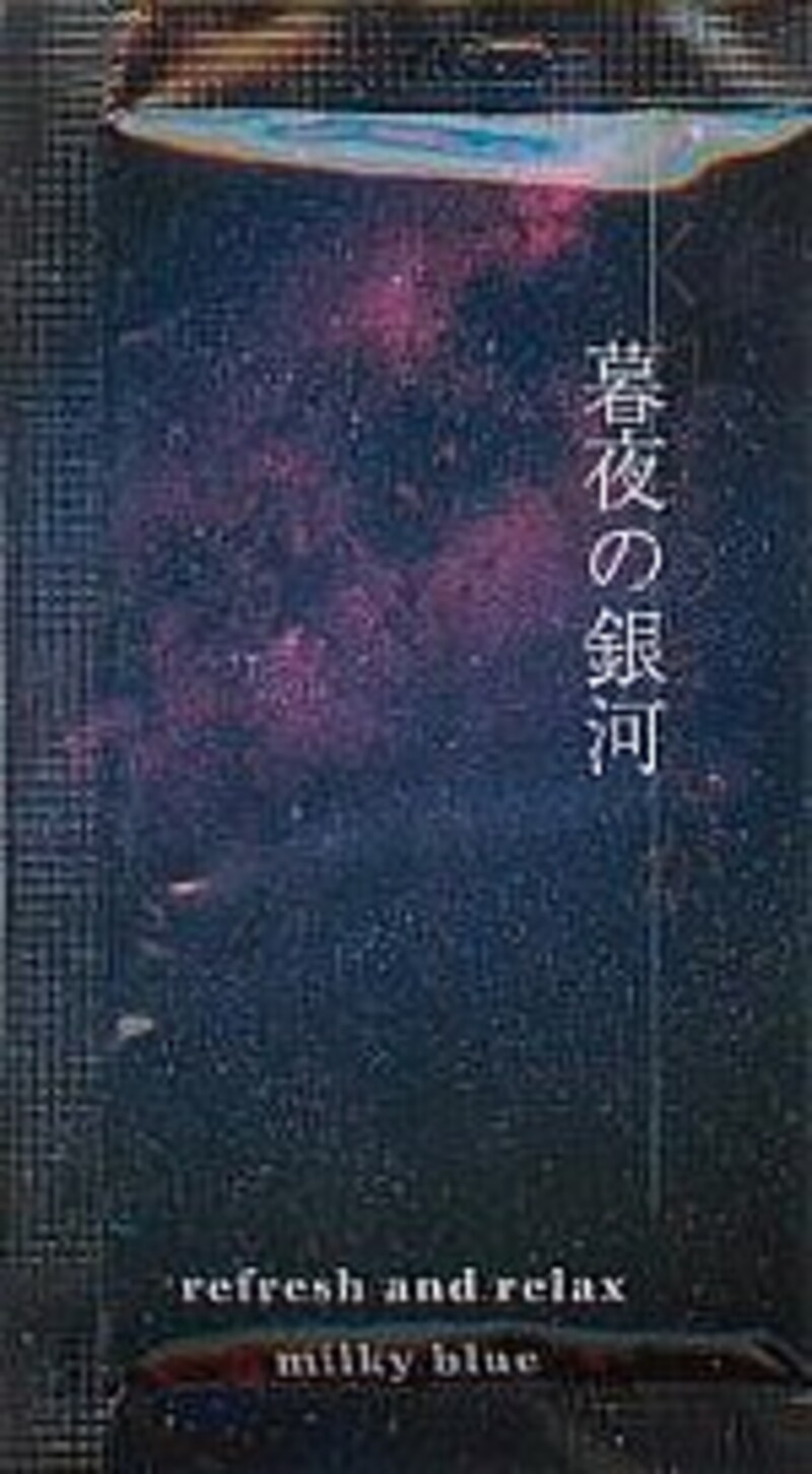 『暮夜の銀河』のパッケージは、夜空のような深くて静かなブルーが印象的。中身は、未来をイメージしたさわやかな香り、明るく穏やかなミルキーブルーの湯色が特徴です。控えめな色と香りが、張り詰めた緊張をゆっくりとときほぐしてくれるようです。