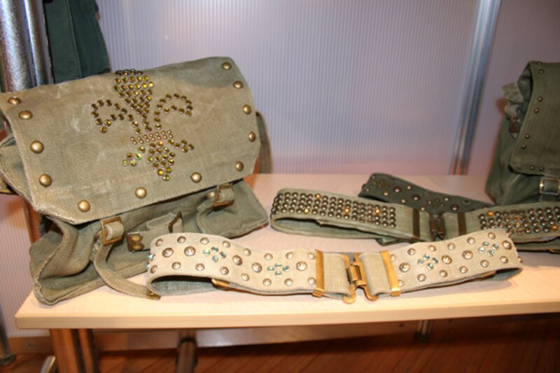 | 「KENTA DESIGNS」のリメイクされたバッグとベルト |