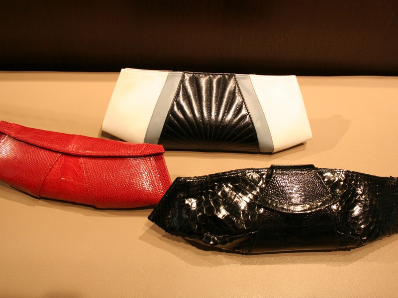 | ルイ・フェローやアンナ・モリナーリ、ランバンを経たデザイナー、アシーフ・ヴァザ氏が立ち上げた、クラッチバッグをメーンとしたブランド、「VAZA(ヴァザ)」のものです。1点ずつ手作業で丁寧に作られています。(写真左から、・RED 189,000円 ・GRAY 98,700円 ・BLACK 162,750円) |