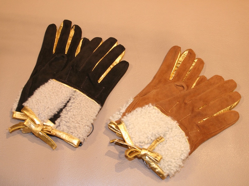| 1924年にフランスの手袋生産の中心であるミロー市で高級手袋の生産アトリエをスタートさせた伝説的なブランド、「MAISON FABRE (メゾン・ファブル)」の手袋です。 ところどころにアクセントになっているゴールドのパイピングレザーが華やかで、クリスマスのギフトとしてもセンスを感じさせます。レザーとファーのコンビネーションと言い、上質で遊び心のあるデザインです。 各24,150円 |