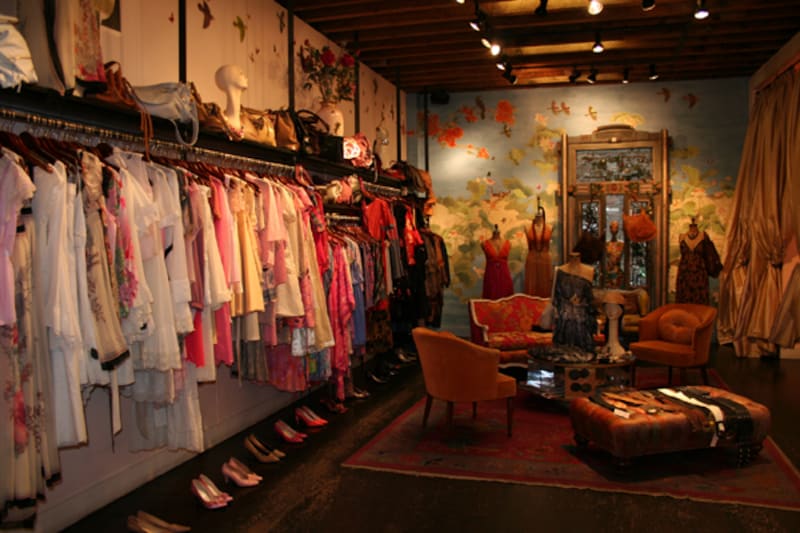 ロココ調にプリントされた壁や、くつろぎのソファーなど、お姫様気分でお買い物が楽しめる内装です。ヴィンテージからインスパイアされて作られたオリジナルのワンピもたくさんあります。