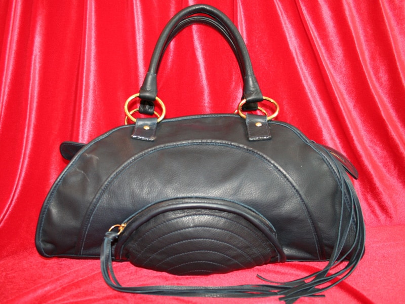 全体的に「I」ラインの縦長コーディネートに、存在感大の面白い横長バッグで合わせ、メリハリをつけてみました。小さなポッケと長いフリンジに遊びごころが感じられるデザインです。