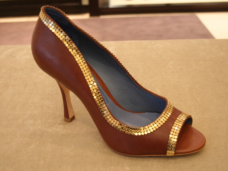 | 女の子らしいキュートなドット柄に後ろリザード革を使用した裏切りのテクニックがニクイ一足。 39,900円 Ashley Dearborn |