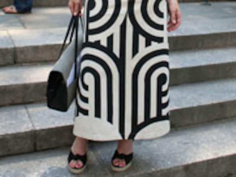 そんなマイクロミニ全盛の中、足首まで隠れるくらいの超ロングのマキシ丈ドレス(ワンピ)を着ている人たちがとても新鮮です! マキシ丈とは「maximum(マキシマム)」の略で、「maxi(マキシ)」。くるぶしが隠れるくらいの丈を指します。1964年のパリコレで発表されたミニスカートが大流行し、翌年にその反動のようにマキシ丈が発表されました。マイクロミニからの揺り戻しで今、マキシがはやっている現象は当時と似ています。