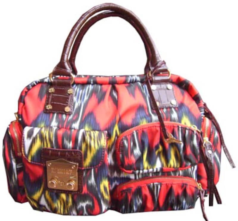 大地を感じさせるようなエコロジーレッドとイエローのコントラストが冴える。ブライトカラーがサファリテイストを際立たせます。ぽってりした丸みのあるフォルムは目をやるだけで癒やされそう。たっぷり入るボストンタイプだけど、ナイロン素材だから軽さは抜群。ダイナミックなプリントは、インドネシアの伝統的な織物「Ikat(イカット)」の柄からインスパイアされたそうです。