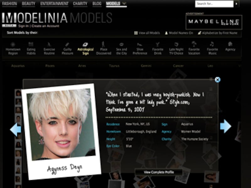 モデルの総数は150人余りにものぼる本格的サイトです。スーパーモデル時代を築き上げたモデルから、新鋭の注目モデルまで、幅広くラインアップされています。