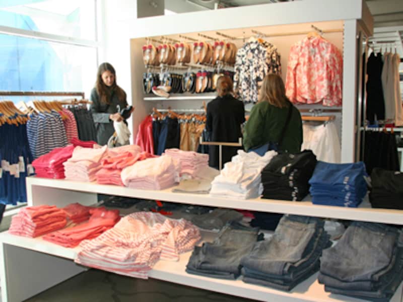 「ジョー フレッシュ スタイル」に「フレッシュ」と付いているのは、スーパー内のフルーツ・野菜売り場のすぐ横で、商品が陳列されているからなのです。スーパー系のファッションブランドはいくつもありますが、「フルーツ・野菜売り場に並べる」というアイデアは斬新かつ驚きです。アイコンカラーのオレンジもフレッシュで美味しそうな色です。