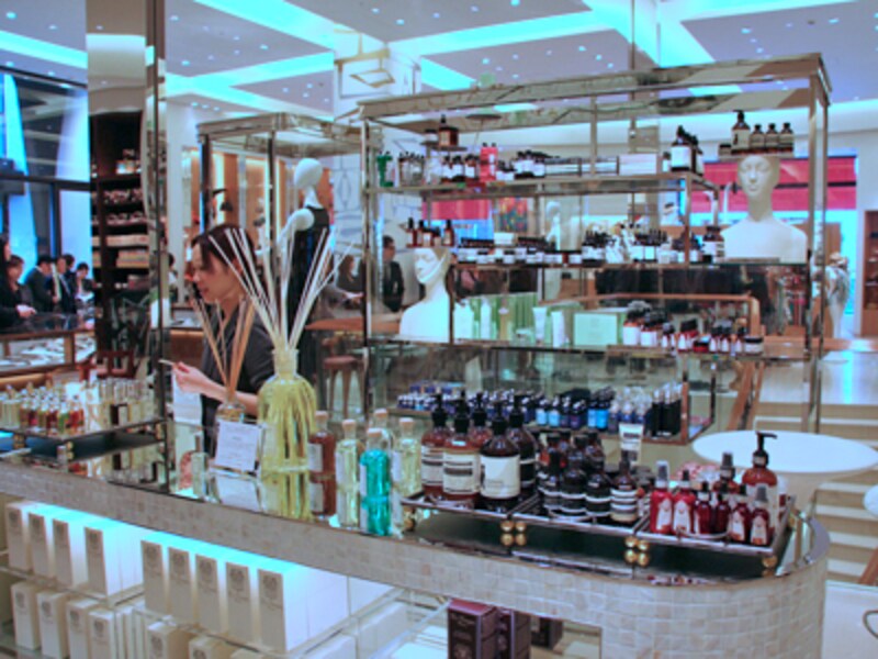 ルームフレグランスや癒やし系アイテムをそろえたアポセカリー(薬店)にも数多くのブランドが展開されています。天井高約5.3メートルの開放的で優雅な空間の中で、リラックスした雰囲気で選ぶことができそうです。