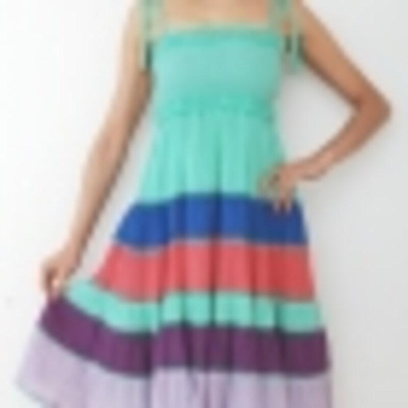 | カラーブロックでハッピームード満点のキャミワンピ |