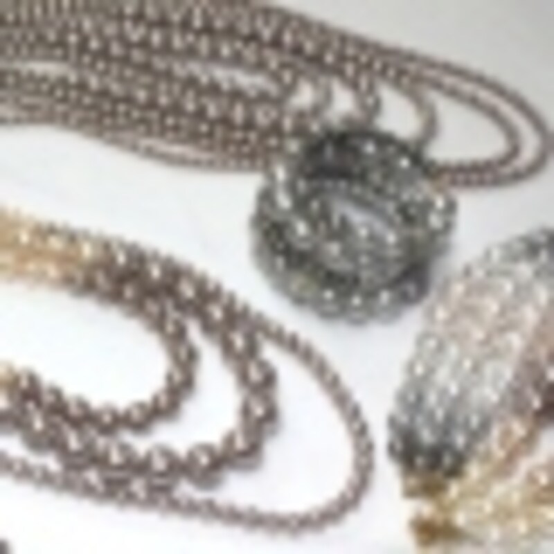 上品なパーティースタイルにチェンジするなら、やっぱりパールのアクセサリーは欠かせません。特にネックレスは、顔周りに程よい光を加えてくれ、明るい印象に仕上がります。