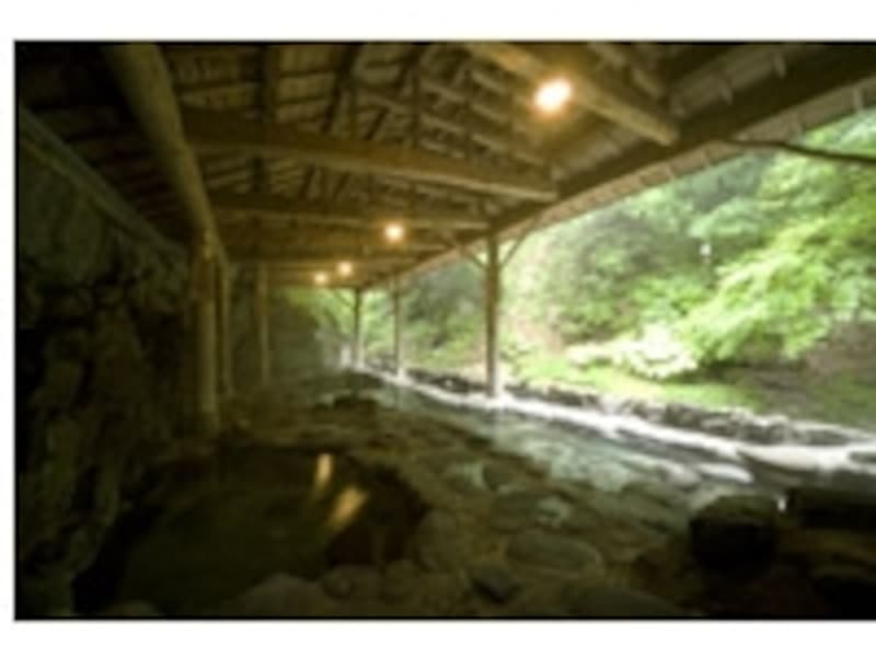 | くつろげる客室と、渓流沿いの天然岩風呂 |