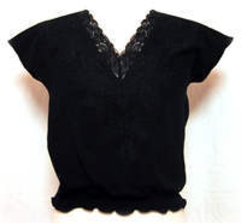 ネックは、20cmと多少深めに開きますが、ブラジャーのレースを使用しているので、同じ白、あるいは黒のランジェリーを着けてもらえば、ちょっとブラが見えている感じでも、カモフラージュ感覚であまり気にならないかもしれません。