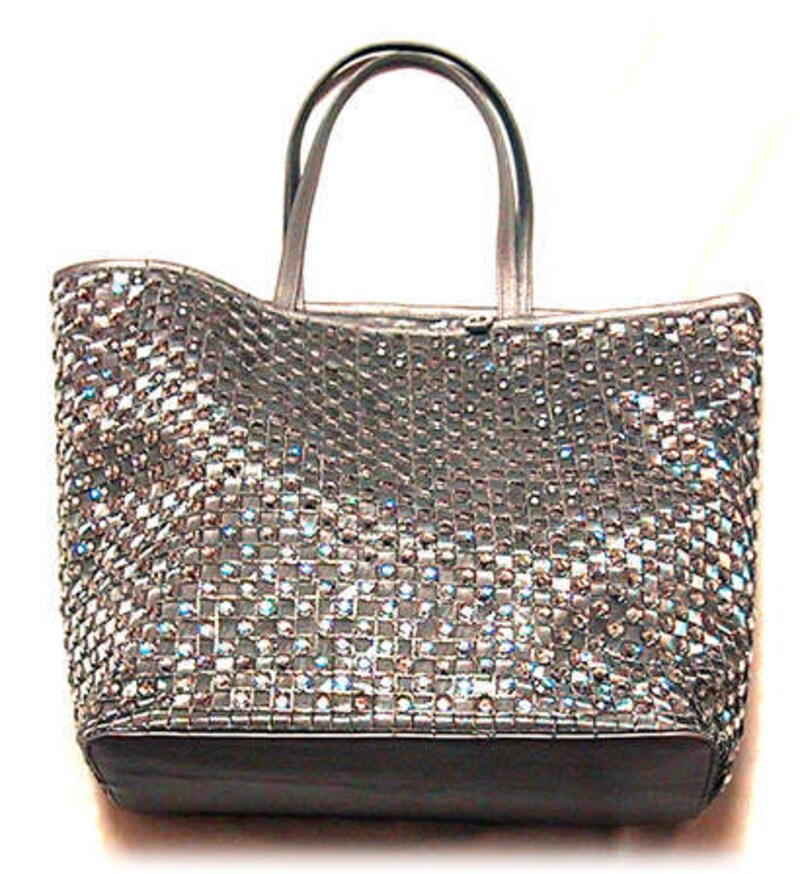 トートバッグタイプも新たに加わった。 こちらは全体的にラインストーンがちりばめられ、パーティなどにも使える華やかな雰囲気をもちながら、結構中身を詰め込んでも使える、汎用性の高さも魅力のバッグ。 |