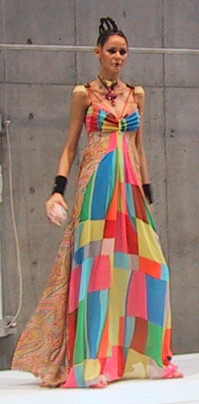 ラグジュアリーな装飾とともに、絶妙な配色のアイテムも多く見られた。 アクセサリーにわりとハードなものを、華奢なワンピース、そして肩の部分にポイントをもってくるようなスタイルは、ちょっと注目されるところ。 |