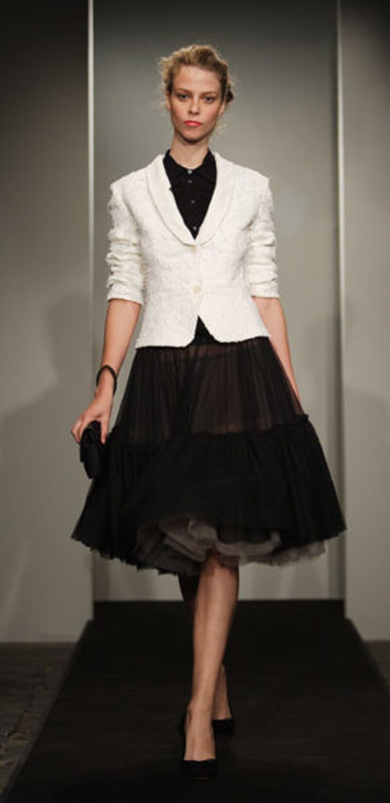 スカートにチュールのボリューム感...下の写真は、コレクションからのルックス。