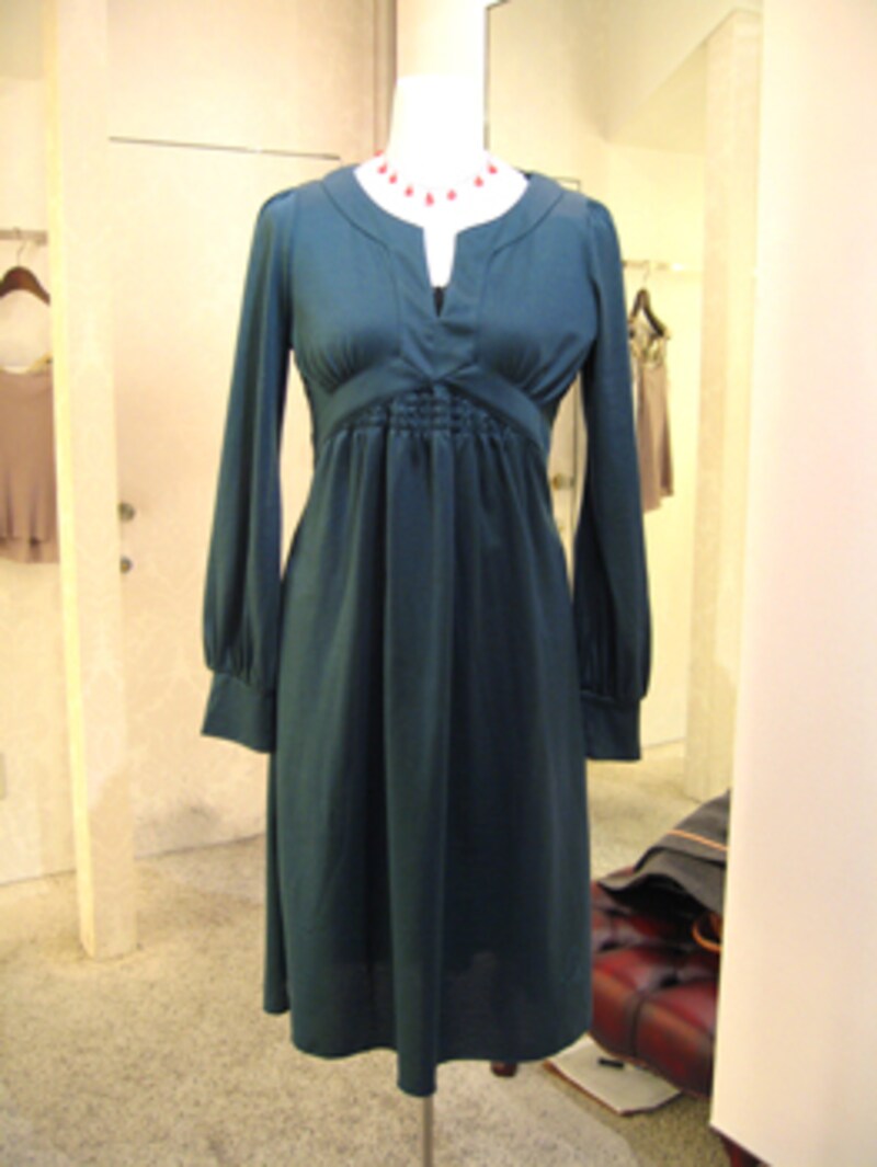 ワンピースではエアリーなジャージーワンピースをチョイス。このようなウエストの切り替えが高いワンピースで、より一層ボディーラインをスリムに見せることができます。カシュクールではなく、今シーズンの通勤スタイルでは、あくまで上品さが漂うシンプルなものを選びたいところです。