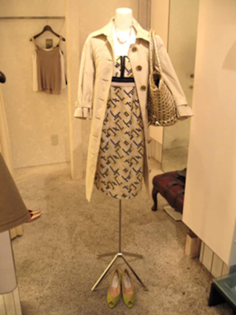 そして今回ピックアップされたコート、ワンピース、バッグ、シューズから導き出された今シーズンの通勤ベストコーデがこちらです。あくまでベーシックにまとめ、色合いの強いシューズやバッグを差し色としてプラスさせるのがエレガントな通勤スタイルのポイントです。