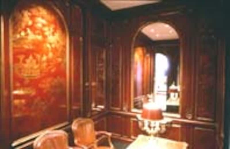 漆と金彩で飾られた、地階のサロン・ド・シノワ。秘密めいた感じのする、ごく小さな部屋です。 |