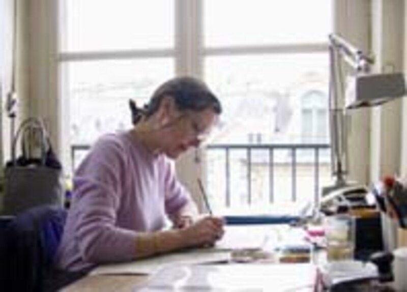 広場に面した居心地のよい窓辺で、デザインに没頭するチーフ・デザイナー。描いていたのは、ルビーのネックレス。 |