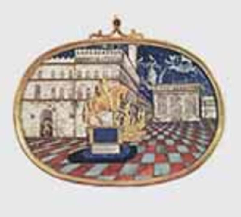 次に中2階へ上がったら、まずは右手へ。「カメオの間」「宝石の間」と名づけられた小部屋には、絶対に見逃せないすばらしい作品があるのです。そのひとつが「コジモ1世のカメオ」。宝石彫刻の名工ジョヴァンニ・アントニオ・デ・ロッシが、5年の歳月をかけて完成させた大作です。18.5×16.5cmの大きな多層アゲートには、トスカーナ大公コジモ1世(1519~1574)と妻エレオノーラ、夫妻の子供たちが刻まれていますが、部分的に欠けており、中央にはまっていたメダイヨンも失われています。しかし、イタリアが生んだ芸術、カメオという宝石彫刻の分野が最盛期を迎えた16世紀ならではの、力強く誇りに満ちた表現は、今なお見る人を圧倒する力を持っています。(画像:コジモ1世のカメオ≫)